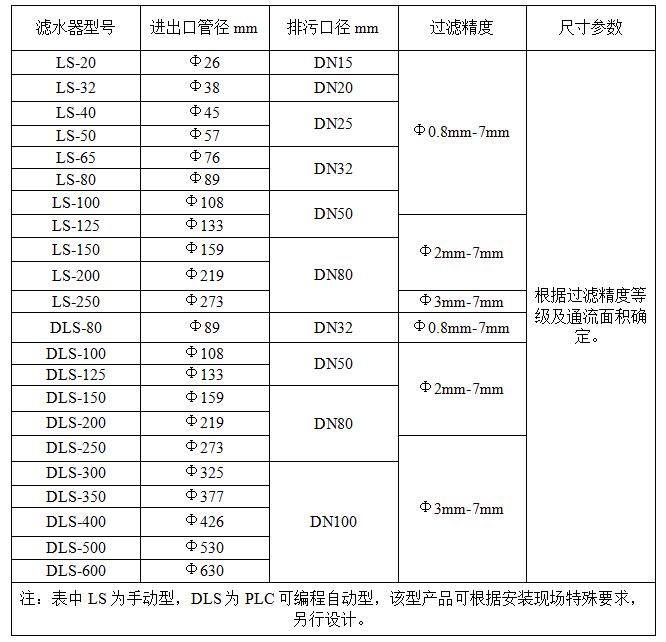 五、電動(dòng)濾水器規(guī)格型號(hào):